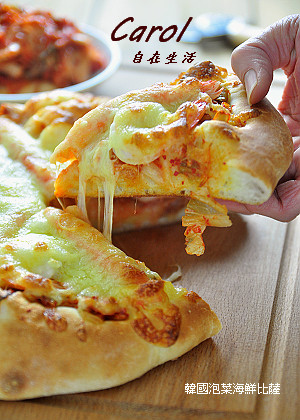 韓國泡菜海鮮比薩 ( 麵包機揉麵糰 )